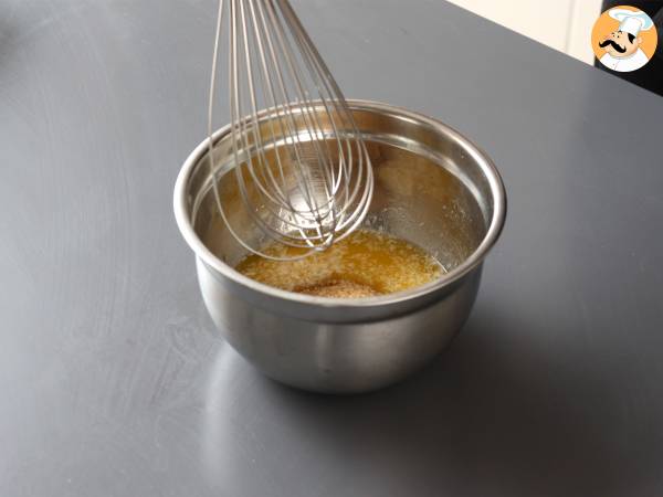Préchauffer le four à 180°C. Mélanger l'œuf avec le sucre roux.