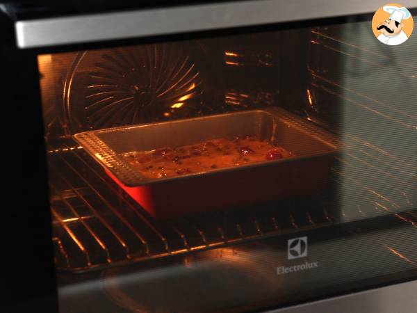 Verser la préparation dans un moule graissé. Bien répartir les cerises.