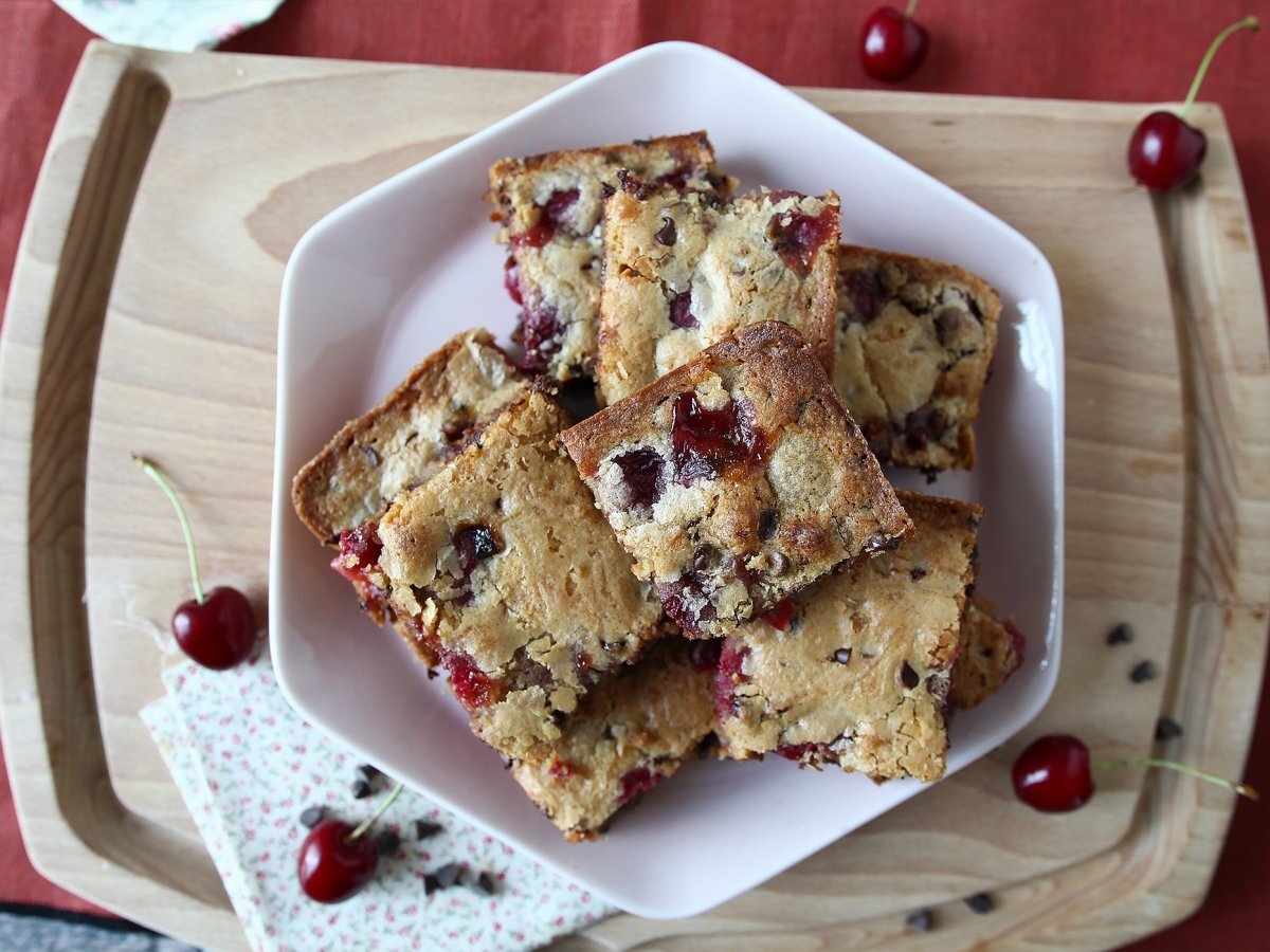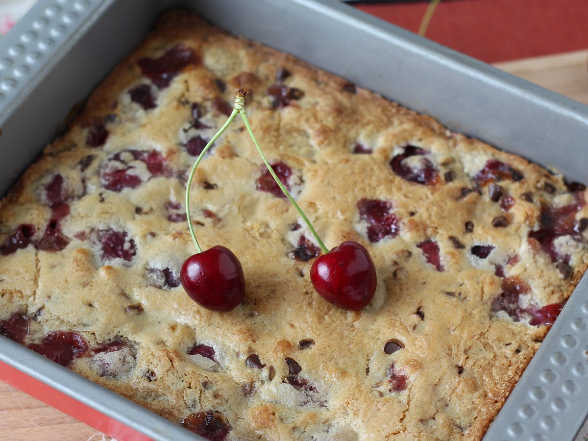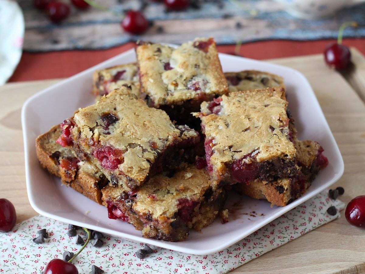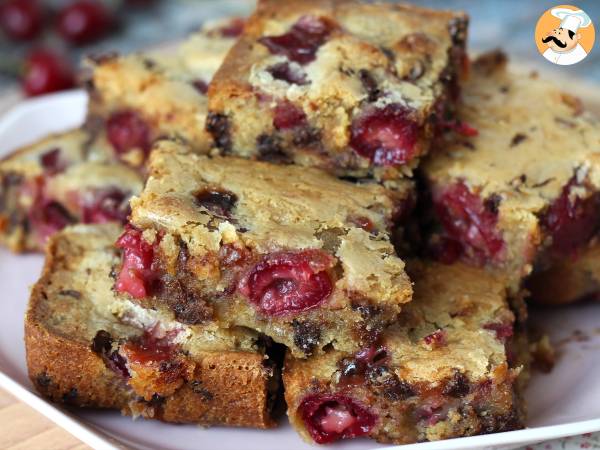 Blondie cerises et chocolat, le gâteau croquant et fondant parfait