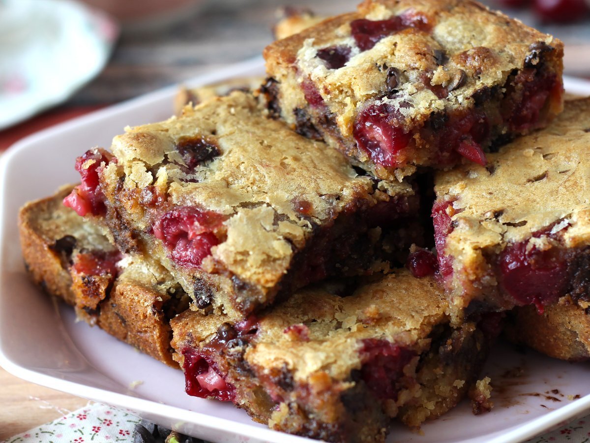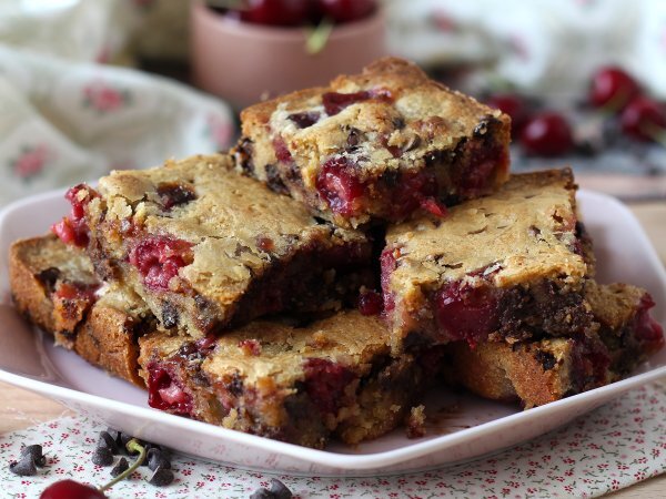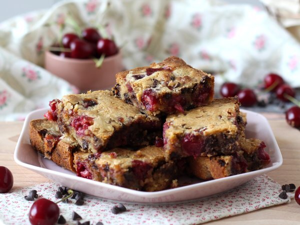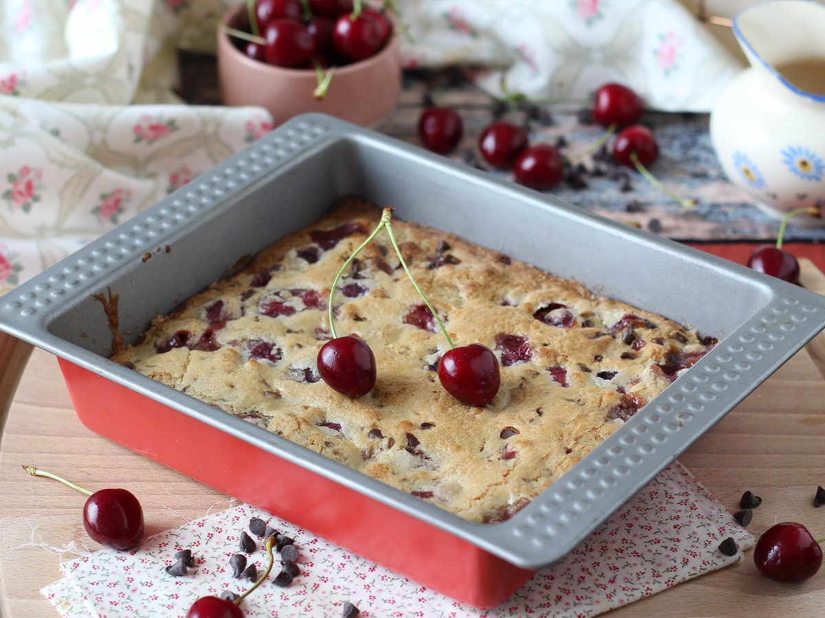 Blondie cerises et chocolat, le gâteau croquant et fondant parfait