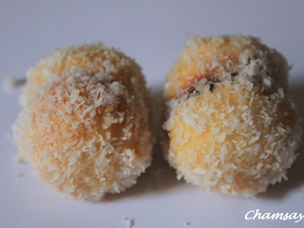 Boules de neige ou gâteaux roulés à la confiture et noix de coco PrécédentSuivant Dessertmoyen1 heure Envoyer cette recette à un ami Imprimer cette page Poser une question à l'auteur Publier votre photo de cette recette Ingrédients 8 250 g de mélange farine et semouline 125 g de sucre 125 g d'huile 2 oeufs 1/2 sachet de levure 1 cas d'eau de fleur d'oranger 1 cas de confiture d'abricot Pour la robe de nos douceurs 250 g de confiture d'abricot noix de coco rapée (à verser au fur et à mesure du "roulage", la quantité est donc variable) 4 cas d'eau de fleur d'oranger (à doser selon vos goûts)