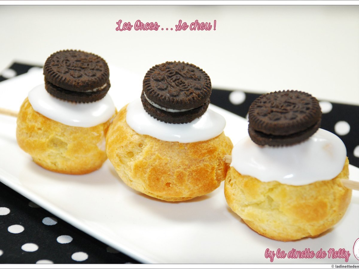 Pour les fans des Oreos, une brochette de choux graphiques fourrés à la crème patissière aux Oreos et surmonté d'un mini Oreo ... I LOVE OREO !!!
