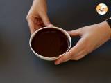 Ajouter enfin le mélange chocolat et beurre fondu et bien l'incorporer. Verser la pâte dans le moule graissé lorsqu'elle est homogène.