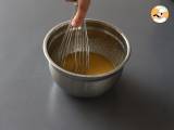 Faire fondre le beurre et le mélanger avec le sucre blanc et le sucre roux.
