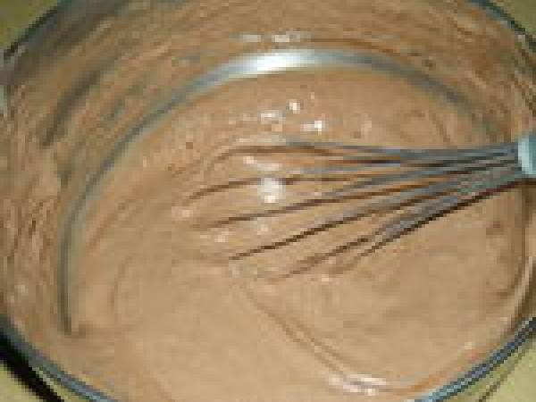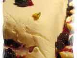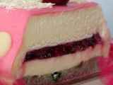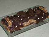Buche biscuit chocolat sur croustillant, ganache montee ivoire, cerises kirsch