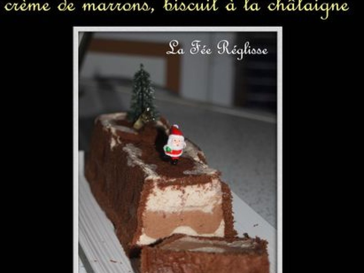 Bûche chocolat au lait et crème de marrons, biscuit à la farine de châtaigne