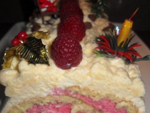 Après un repas bien riche et copieux rien de tel qu'un dessert ( une bûche qui plus est, si l'on veut suivre les traditions de Noël) léger et gouteux..une bûche à la mousse de fruits rouges nappée d'une mousseline..voilà qui constituerait le dessert idéal de ces prochaines fêtes non ? J ai utilisé une plaque à génoise (27 x 37 cm) et les proportions données en dessous m'ont permis de faire une autre petite bûche pour 4 personnes ainsi que 6 verrines de mousse aux fruits rouges...