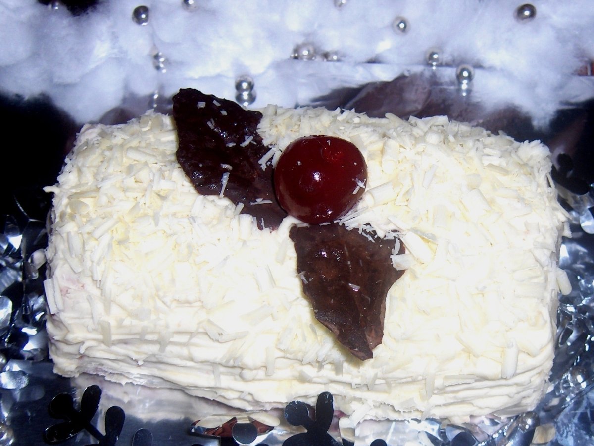Bûche en fôret blanche (rapide et sans gélatine) Dessertmoyen17 min Envoyer cette recette à un ami Imprimer cette page Poser une question à l'auteur Publier votre photo de cette recette Ingrédients 8 Biscuit dacquoise : 4 blancs d'oeufs 60 g de sucre en poudre 100 g de sucre glace 40 g de noix en poudre 60 g de poudre d'amandes 20 g de farine Crème d'amande : 10 cl de crème liquide entière 135 g de mascarpone 15 g de sucre glace 1/2 sachet de crème-fixe 20 gr. de sucre en poudre 1/2 cuil; à café d'amande amère Coulis aux cerises : 100 g cerises 40g de sirop de cerise ou fruits rouges le jus des cerises "égouttées" 1 cc de jus de citron Garniture pour la crème d'amande : 150 g cerises Glaçage à la crème légère au chocolat blanc : 100 g de chocolat blanc (nestlé dessert) 15 cl de crème liquide entière 2 très grosses cuillère de mascarpone