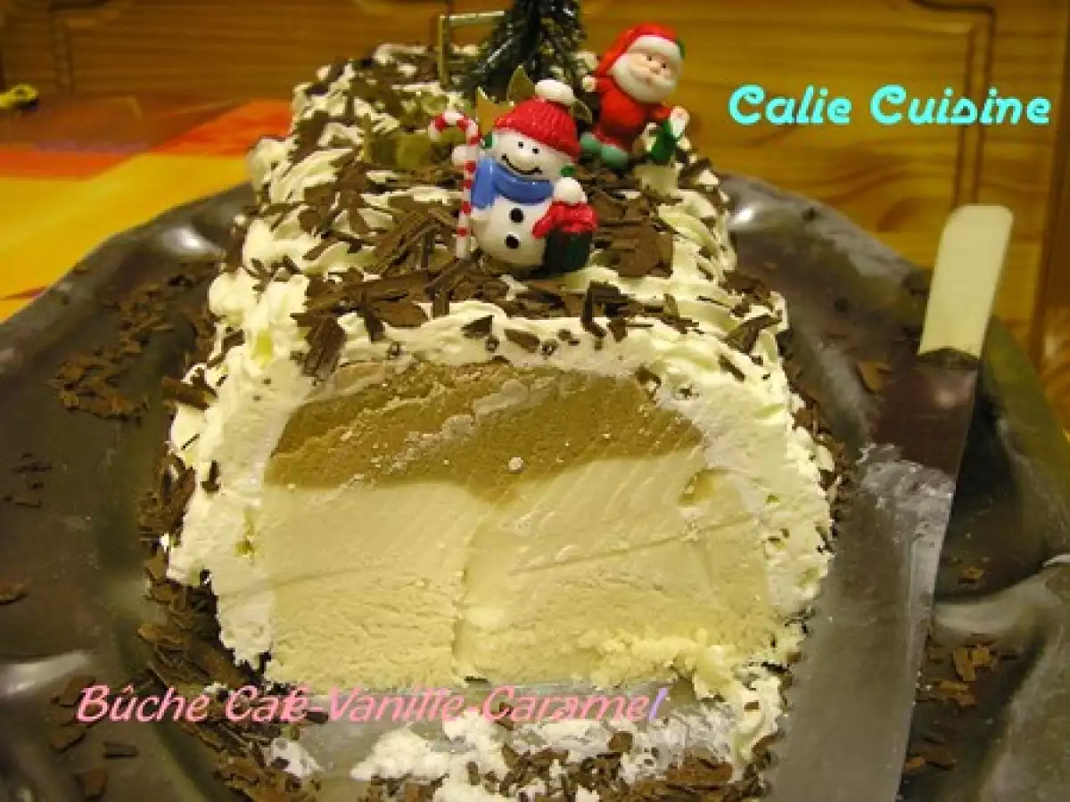 Bûche glacée café-vanille-caramel ! noel PrécédentSuivant Dessertmoyen40 min1223 Kcal Envoyer cette recette à un ami Imprimer cette page Poser une question à l'auteur Publier votre photo de cette recette Pour un dessert bien sympa! vous pouvez servir celui-ci! d'est à tomber. Ingrédients 6 1 Litre de Glace au café (maison pour nous...) 1 Litre de Glace vanille (maison ici) 1 Litre de Glace au caramel (maison aussi !!) 200g de chantilly 100g de copeaux de chocolat (+une décors spécial bûche Noël)