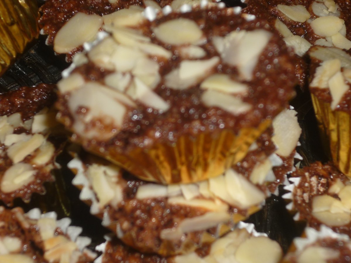 Caissette aux amandes effilées PrécédentSuivant Dessertfacile22 min258 Kcal Envoyer cette recette à un ami Imprimer cette page Poser une question à l'auteur Publier votre photo de cette recette Ingrédients 8 20 gr de farine. 100 gr d'amandes en poudre. 100 gr de sucre glace. 50 gr de beurre fondu. 1/4 de càc de levure chimique. 2 oeufs. 2 càs de poudre de cacao. 50 gr d'amandes effilées. Coût estimé: 3.98Euros€ (0.5€/part)