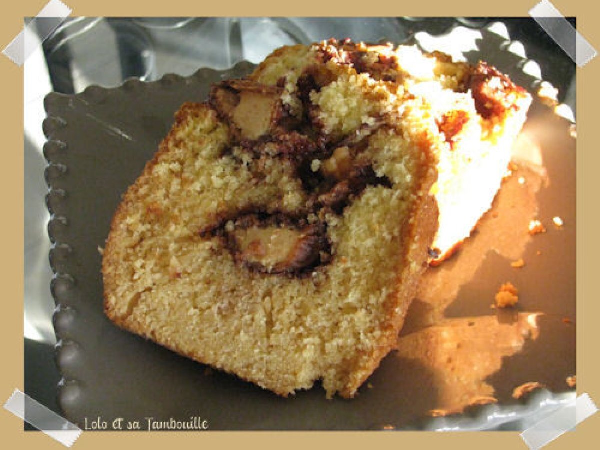 Un petit cake extra gourmand… Il me restait des barres de Kinder Bueno et j’ai eu envie de les intégrer dans notre petit cake quotidien…