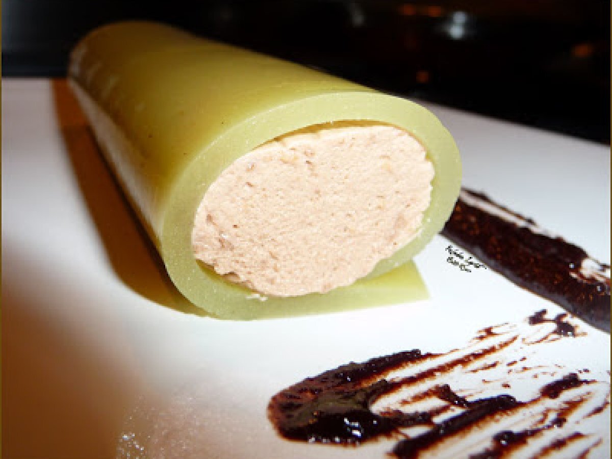 Cannellonis de kiwi à l'agar et sa mousse. votez maintenant Dessertmoyen45 min Envoyer cette recette à un ami Imprimer cette page Poser une question à l'auteur Publier votre photo de cette recette Ingrédients 6 130g de Jus de Kiwi réduit (soit environ le jus de 5 fruits ramené à ce poids), 3g d?agar agar, ? pour la Mousse Poire: le jus passé de 4 poires caramélisées au Balsamique, 30 g de Lait, 30 g de Crème liquide, 2 Jaunes d’oeufs, 2 Feuilles de Gélatine, 4 Carrés de Chocolat à 66%, 3 belles Cuillères à Soupe de Crème Fouettée.