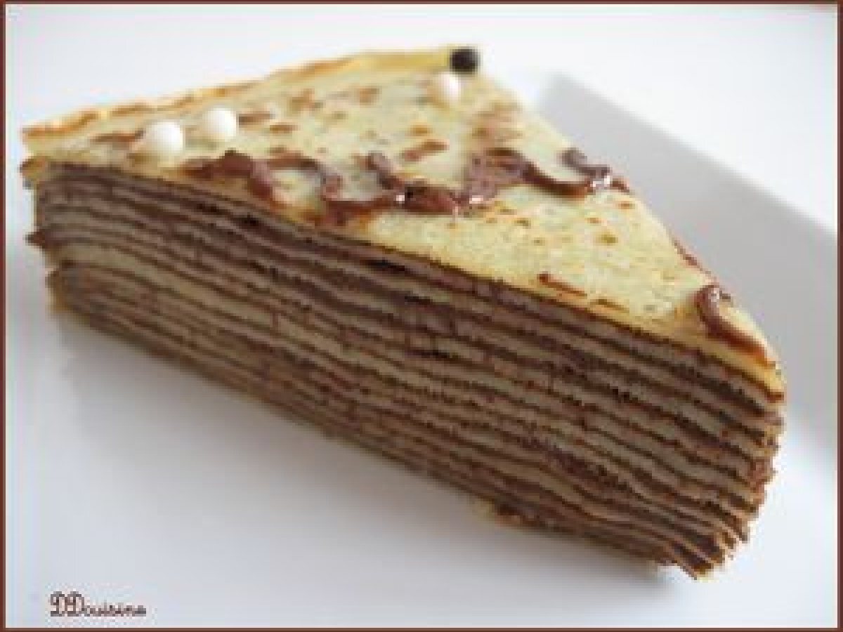 Chandeleur avec un gâteau de crêpes au chocolat PrécédentSuivant Dessertfacile24 min373 Kcal Envoyer cette recette à un ami Imprimer cette page Poser une question à l'auteur Publier votre photo de cette recette Ingrédients 6 Pour 12 crêpes de 20 cm de diamètre : 250 g de farine 1 pincée de sel 3 à 4 oeufs lait Pour la garniture qui est de la mousse au chocolat : 180 g de chocolat noir (58% de cacao) 3 oeufs jaunes et blancs séparés 1 pincée de sel Coût estimé: 2.65Euros€ (0.44€/part)