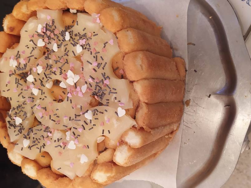 Je cherchais un beau dessert pour épater nos invités ce soir, et je suis tombée sur une merveilleuse Charlotte Chocolat/ Ananas de Lolo. un vrai délice!!