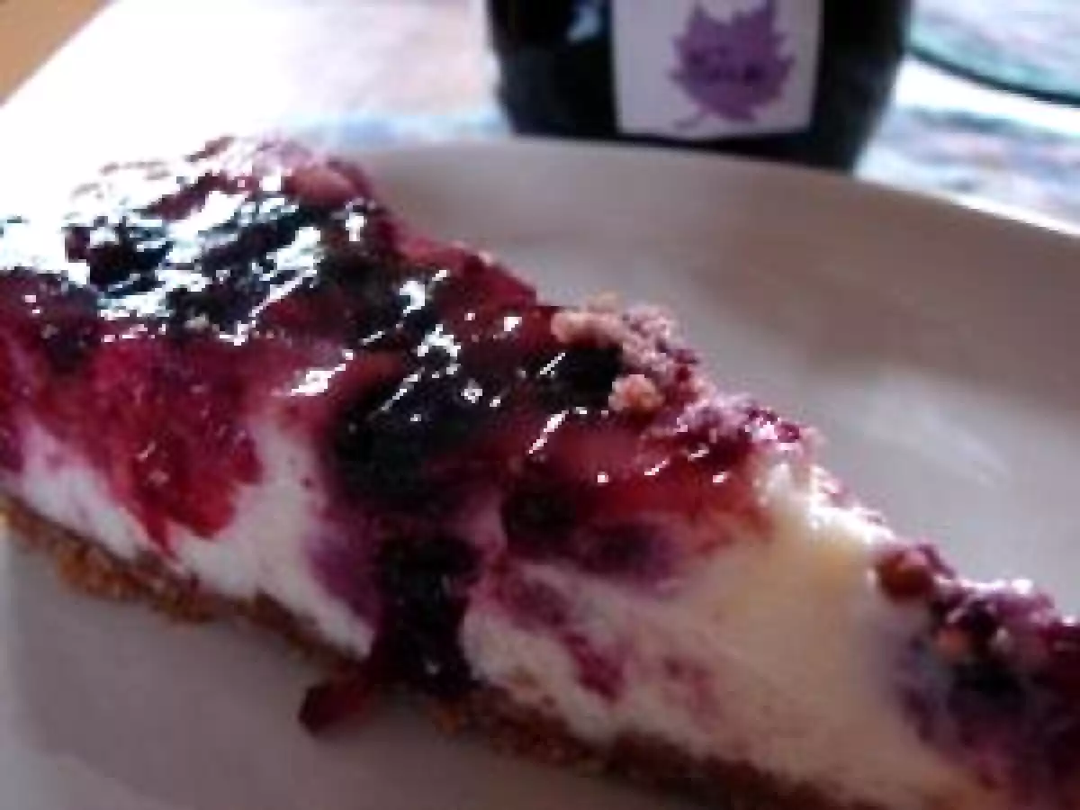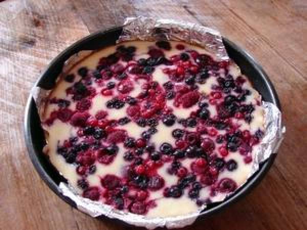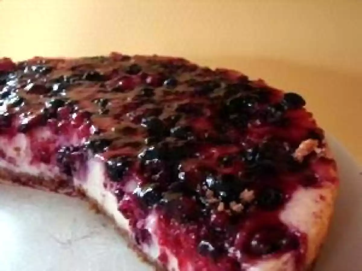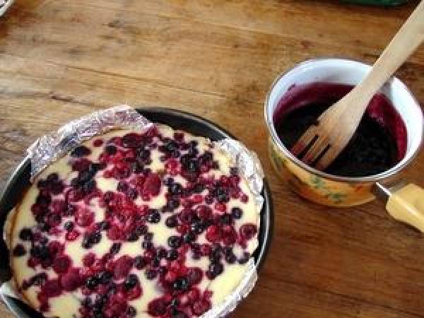 Voici un cheesecake de belle couleur avec des fruits rouges surgelés. Un peu difficile à réaliser mais très délicieux.