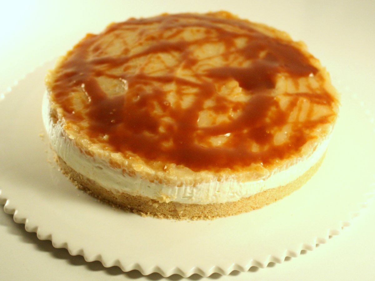 est que l: on met le caramel au moment de servir merciJe l'avais mis une fois que le formage frais avait refroidi. Il peut être mis avant d'être servi.