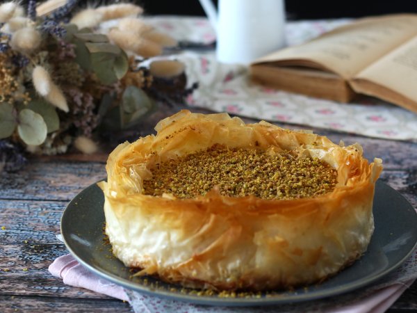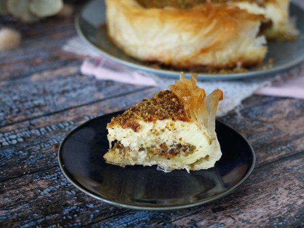 Cheesecake façon baklava à la pistache, croustillant et fondant