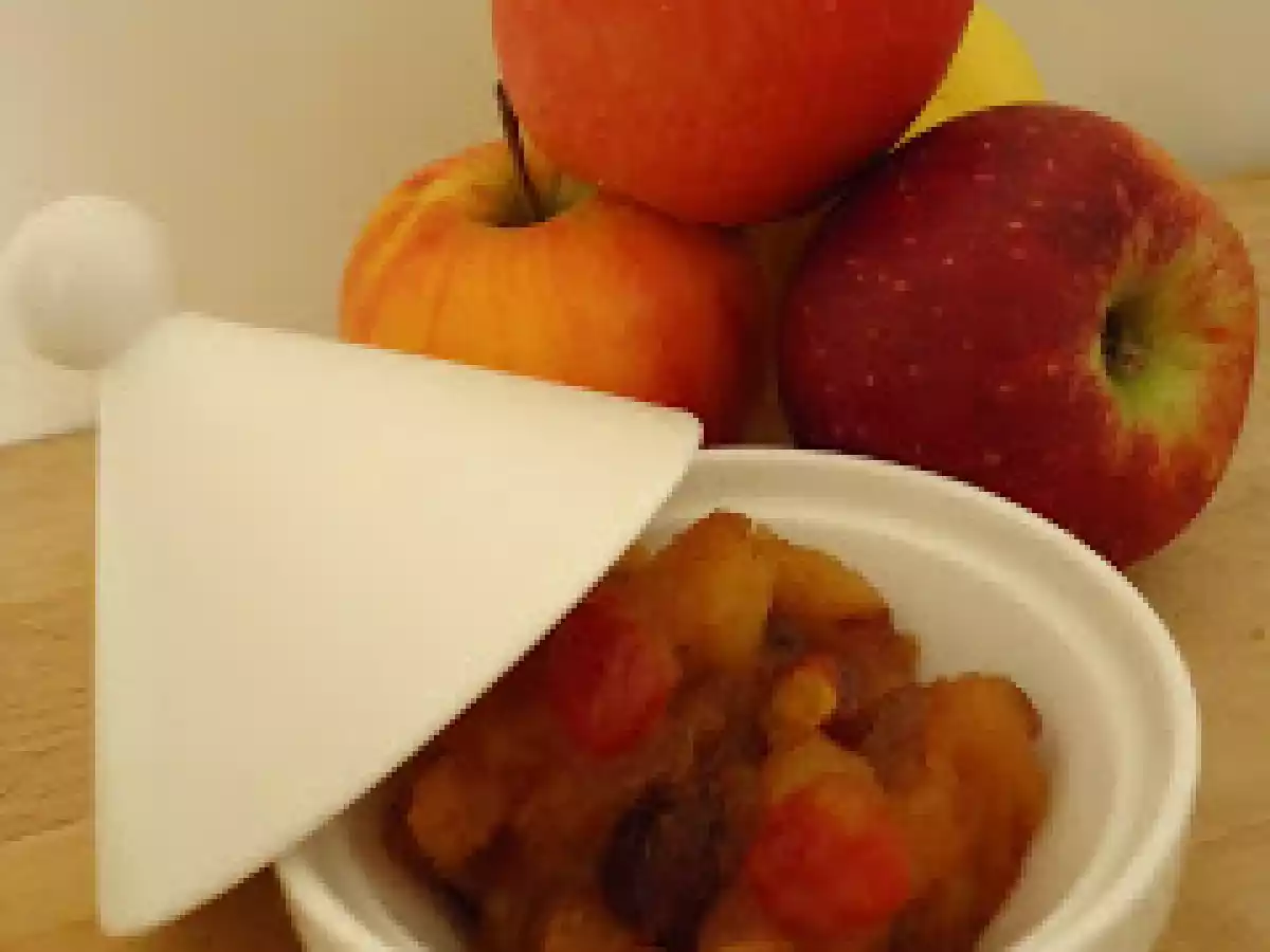 Chutney aux pommes, fruits secs et épices douces Dessertfacile1 h 15 m562 Kcal Envoyer cette recette à un ami Imprimer cette page Poser une question à l'auteur Publier votre photo de cette recette Ingrédients 4 1 kg de pommes 100 g d'abricots secs 100 g de pruneaux dénoyautés 50 g de raisins secs 6 cuillères à café de gingembre en poudre 3 cuillères à café de curcuma 2 clous de girofle le jus d'un citron 25 cl de vinaigre de cidre 2 cuillères à soupe de moutarde douce 200 g de sucre roux
