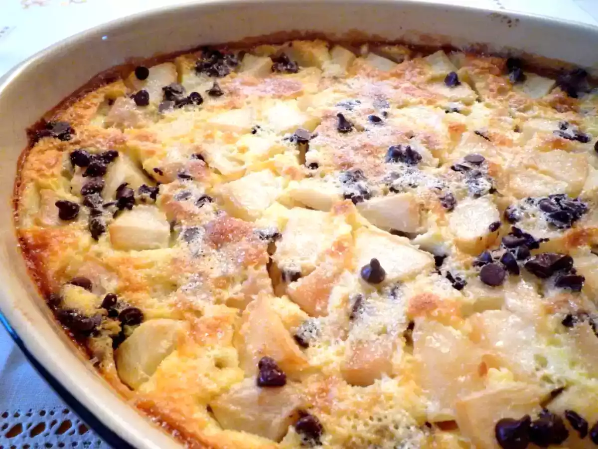 Clafoutis poires chocolat Dessertfacile1 heure240 Kcal Envoyer cette recette à un ami Imprimer cette page Poser une question à l'auteur Publier votre photo de cette recette Ingrédients 8 9 Cuillères à soupe de sucre 5 Cuillères à soupe de farine 1/4 de litre de lait tiède 4 oeufs 30 g de beurre fondu 1 pincée de sel 1 sachet de sucre vanillé 4 poires William 1 Cuillère à soupe de kirsch 50 g de pépites de chocolat noir Coût estimé: 3.49Euros€ (0.44€/part)