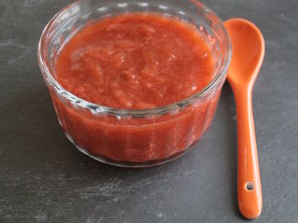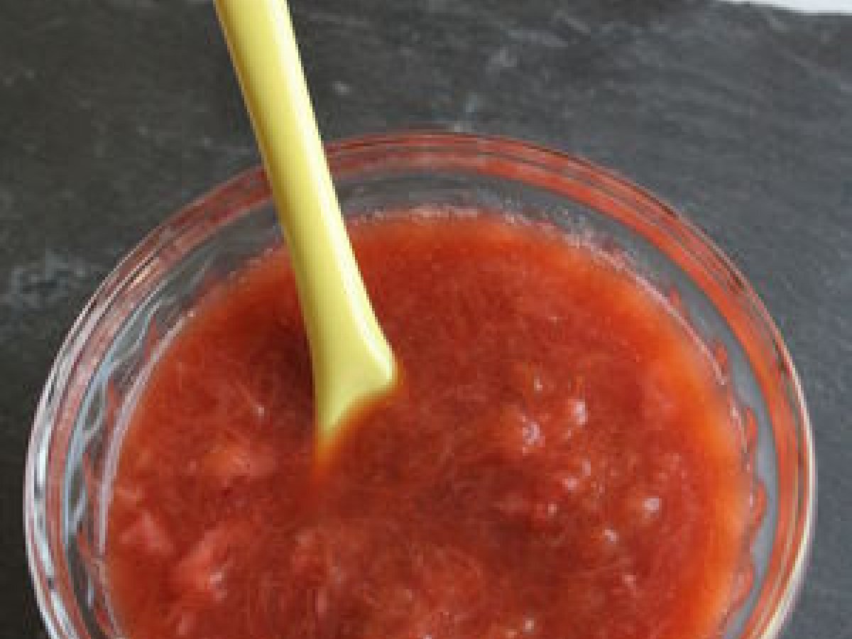 Compote de rhubarbe, fraise et banane