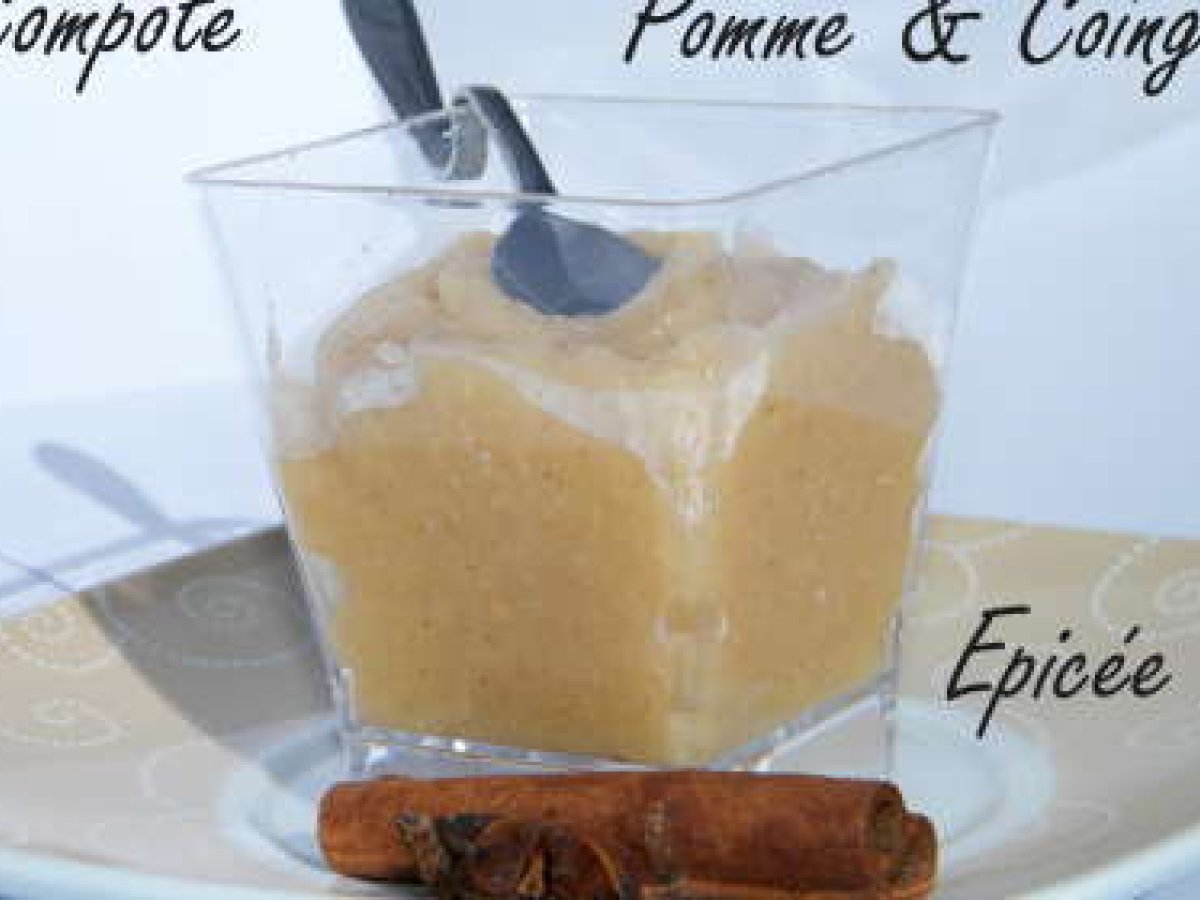 Compote pomme/coing épicée PrécédentSuivant Dessertfacile50 min Envoyer cette recette à un ami Imprimer cette page Poser une question à l'auteur Publier votre photo de cette recette Ingrédients 4 1 grosse pomme / 2 gros coings / Eau / sucre / 1/2 càc de vanille en poudre / 1 càc d'épices à pain d'épices ( cannelle , gingembre, coriandre, anis, girofle, badiane, muscade) ou 4 épices , cannelle etc ...