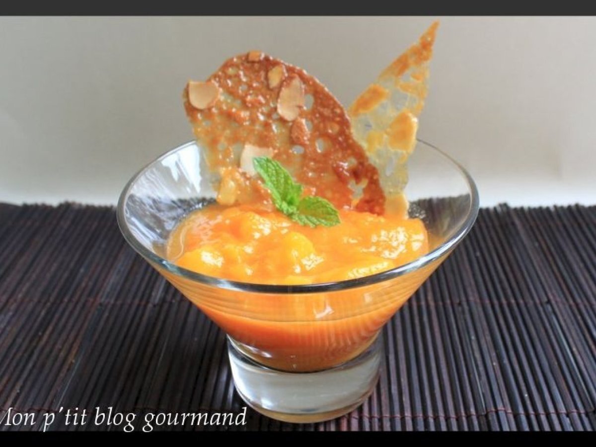 Compotée pêche abricot et tuiles croustillantes aux amandes Dessertfacile55 min Envoyer cette recette à un ami Imprimer cette page Poser une question à l'auteur Publier votre photo de cette recette Ingrédients 4 Pour 6 petites verrines ou 4 coupes dessert: Compotée pêche abricot > 5 pêches > 5 abricots > 2 cuillères à café de miel Tuile croustillante aux amandes > 55g de sucre blanc > 3cl de jus d?orange (environ le jus d?une ½ orange) > 15g de beurre en dés (à sortir 1h à l?avance) > 15 g de farine > 20g d amandes effilées