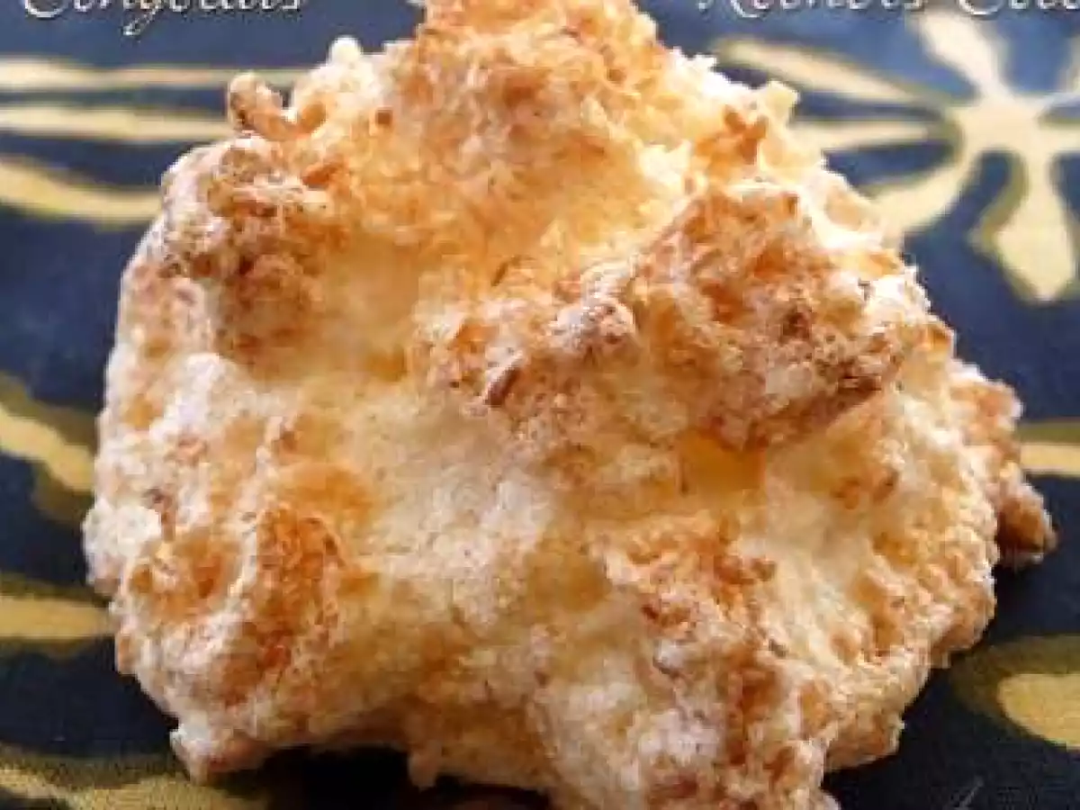 Congolais ou rochers noix de coco PrécédentSuivant Dessertfacile16 min243 Kcal Envoyer cette recette à un ami Imprimer cette page Poser une question à l'auteur Publier votre photo de cette recette Ingrédients 4 2 blancs d'oeufs 125 gr de noix de coco râpée 110 gr de sucre en poudre 10 g de sucre vanille de Bourbon beghin Say Coût estimé: 1.74Euros€ (0.44€/part)