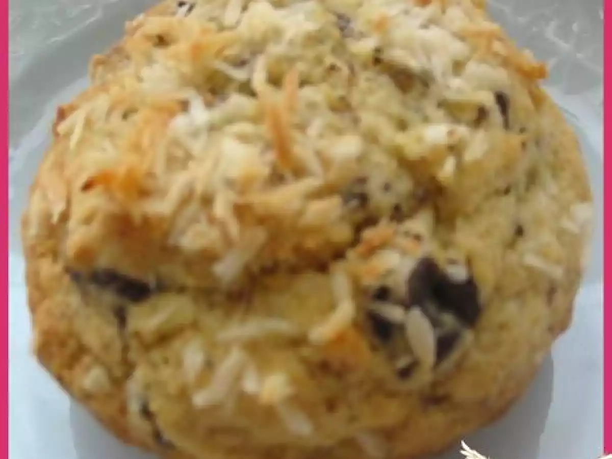Cookies géants à la noix de coco et aux pépites de chocolat noir votez maintenant PrécédentSuivant Dessertfacile30 min454 Kcal Envoyer cette recette à un ami Imprimer cette page Poser une question à l'auteur Publier votre photo de cette recette Ingrédients 6 70 grammes de sucre 1 sachet de sucre vanillé 125 grammes de beurre ramolli 1 oeuf 60 + 20 grammes de noix de coco râpée 175 grammes de farine 1 sachet de levure 1 pincée de sel 100 grammes de chocolat noir corsé 10 grammes de beurre un peu de farine Coût estimé: 3.01Euros€ (0.5€/part)