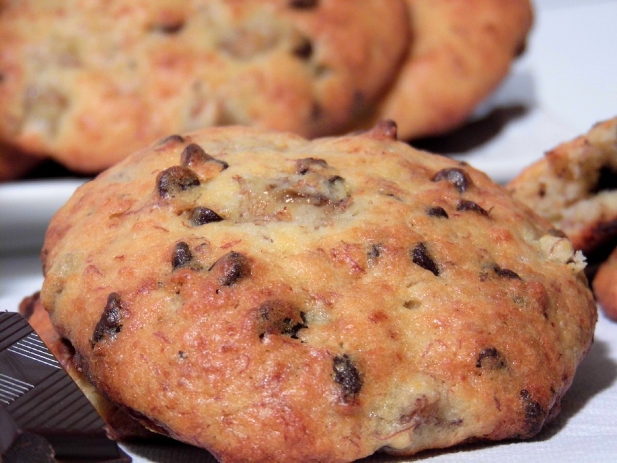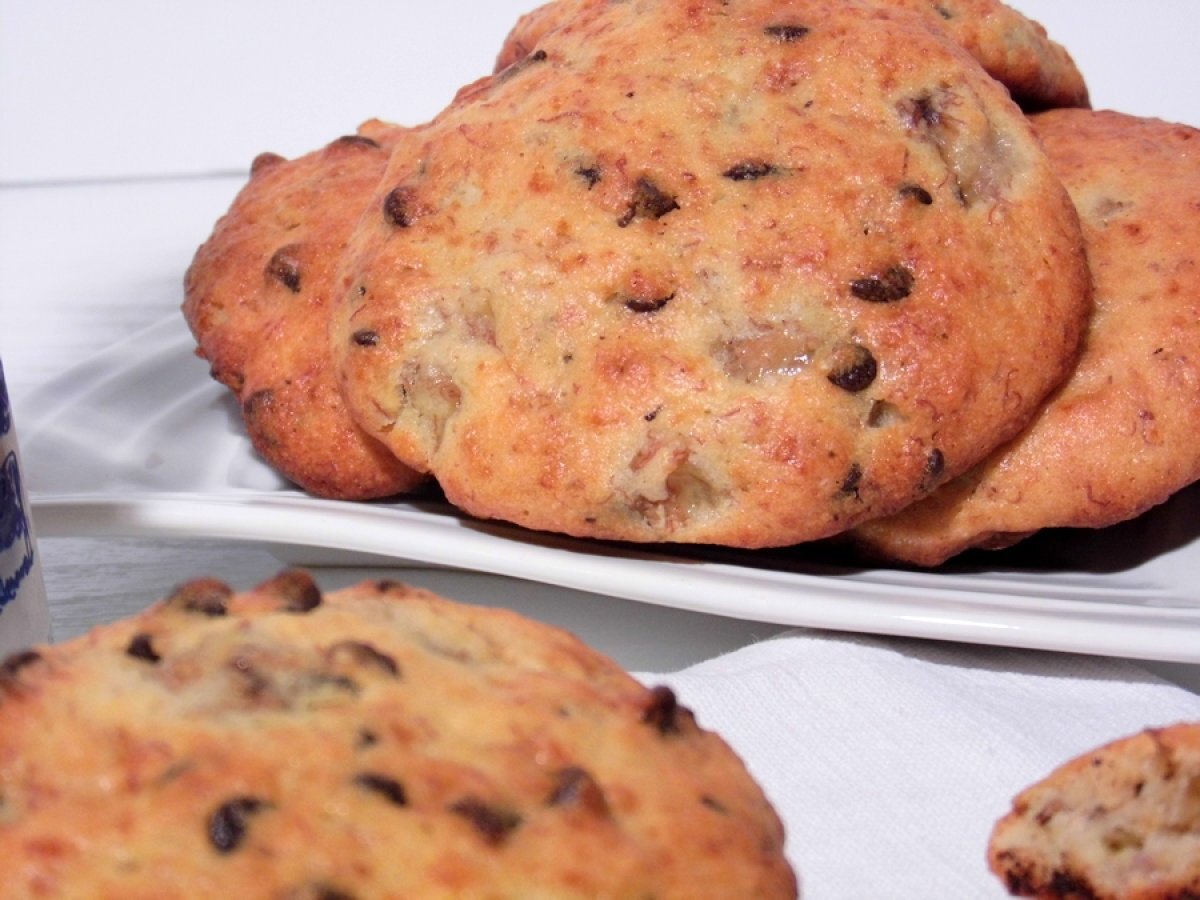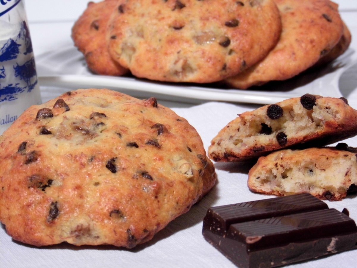 Les cookies, ces petits biscuits déclinés à l'infini, très simples et rapides à préparer pour une maximum de gourmandise, et cette fois j'ai craqué pour les cookies banane, chocolat. La Banane apporte un moelleux merveilleux à ces cookies. Je vous les recommande vivement.