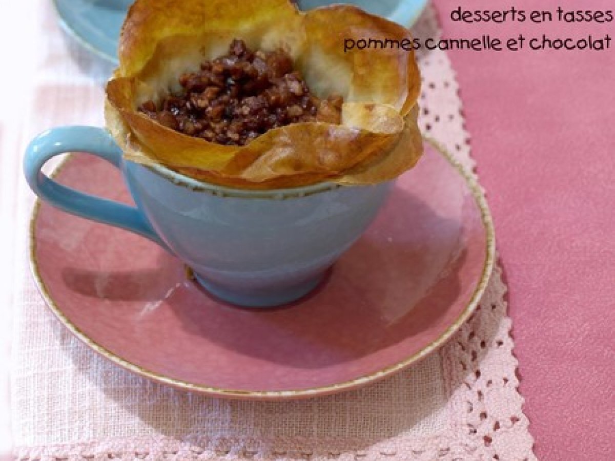 Corolle de feuilles de filo aux pommes, cannelé et chocolat