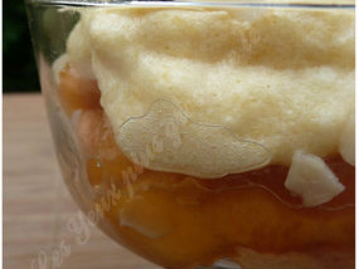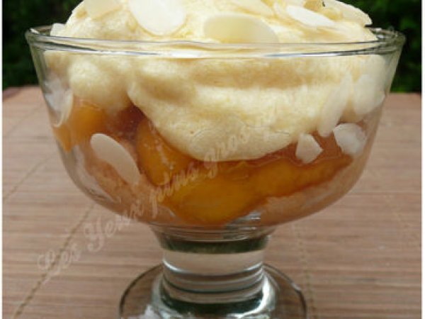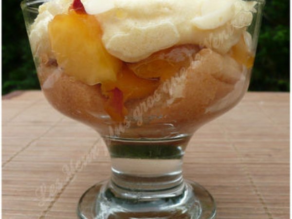 Coupe "comme une charlotte" aux pêches votez maintenant PrécédentSuivant Dessertfacile16 min347 Kcal Envoyer cette recette à un ami Imprimer cette page Poser une question à l'auteur Publier votre photo de cette recette Ingrédients 4 12 boudoirs (peut varier selon la taille des coupes) 2 cuillères à soupe de sucre en poudre 7 pêches 1 blanc d’oeuf 1 cuillère à café d'agar agar 10 cl de crème liquide Coût estimé: 6.99Euros€ (1.75€/part)