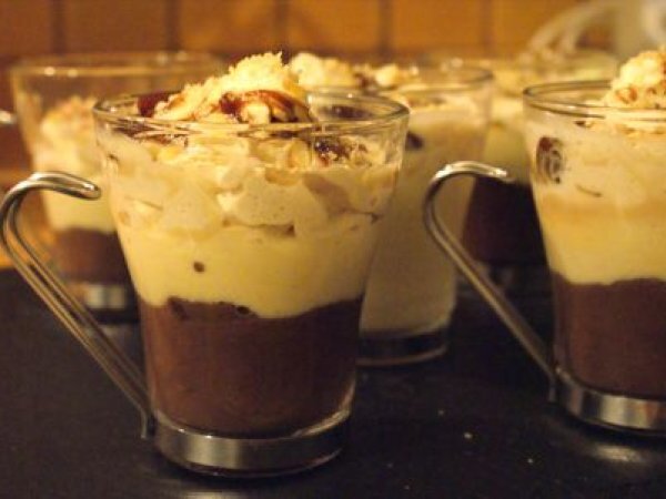 Crèmes dessert façon chocolat viennois PrécédentSuivant Dessertfacile35 min764 Kcal Envoyer cette recette à un ami Imprimer cette page Poser une question à l'auteur Publier votre photo de cette recette Ingrédients 4 50 cl de lait 4 jaunes d'oeufs 75 g de sucre 2 sachets de sucre vanillé 2 cuillères à café de fécule de maïs 5 cuillères à soupe bombées de cacao amer 20 cl de crème entière liquide 8 caramels au beurre salé Coût estimé: 4.06Euros€ (1.02€/part)