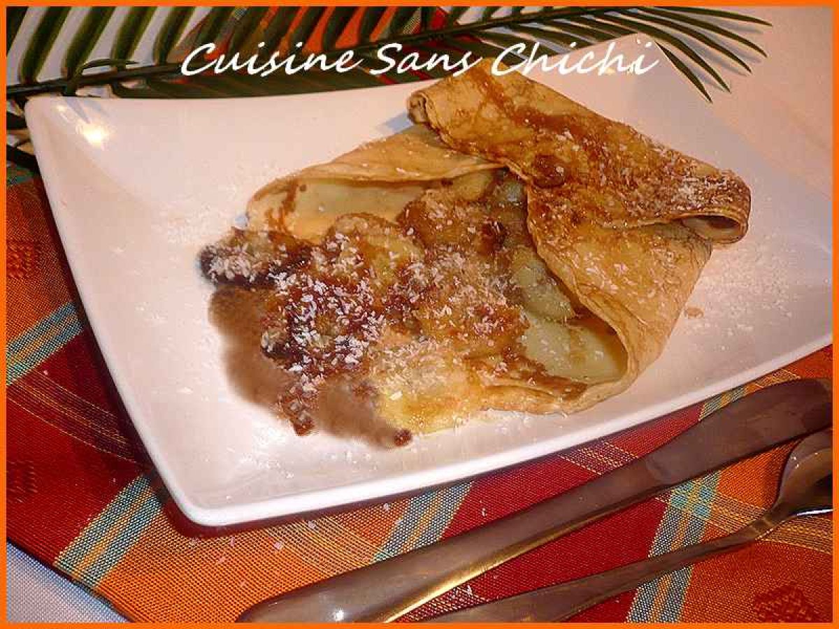 Crêpe martiniquaise, banane, coco, flambé au rhum