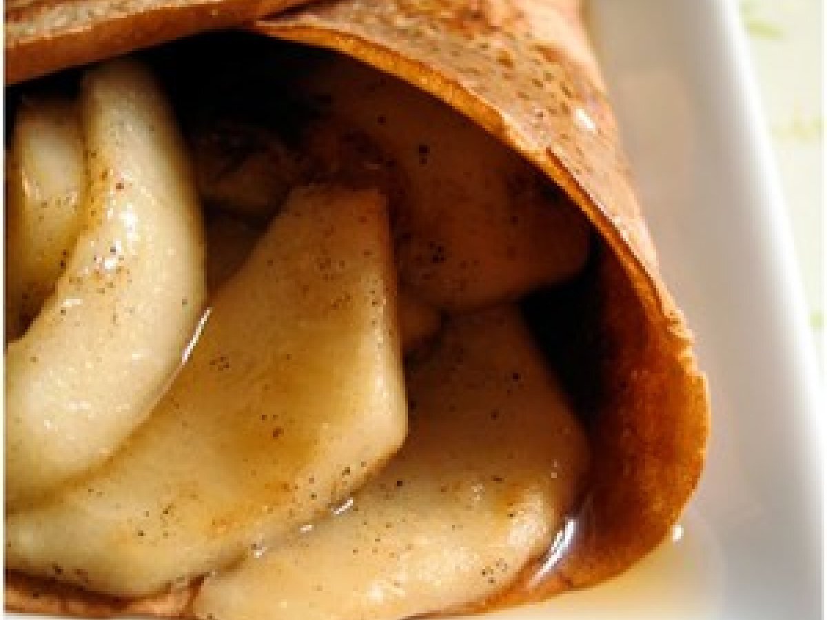 Crêpes à la farine de châtaigne, pommes chaudes à la cardamome