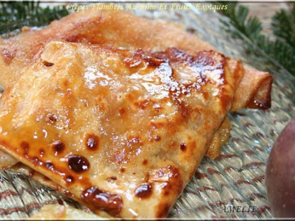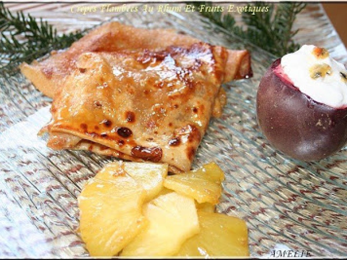 Crepes flambees au rhum, ananas caramelise et creme passion votez maintenant PrécédentSuivant Dessertfacile25 min Envoyer cette recette à un ami Imprimer cette page Poser une question à l'auteur Publier votre photo de cette recette Ingrédients 3 6 crêpes Un peu de beurre 4 /5 cuillères à soupe de sucre roux Quelques tranches fines d'ananas cru ou en boite 50 ml de rhum 50 ml de jus de fruit 2 fruits de la passion 60 g de mascarpone + 60 g de crème battue en chantilly Une cuillère à soupe de sucre