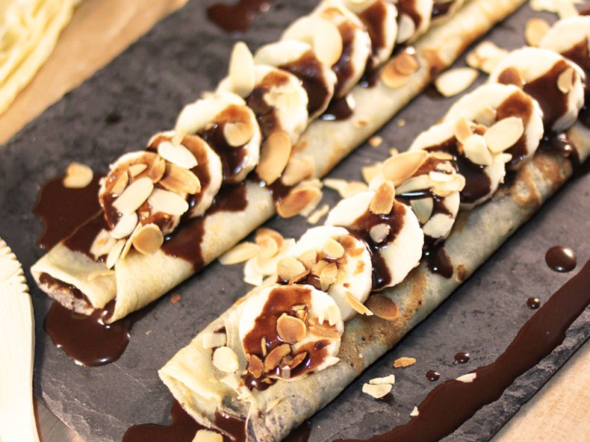 Des crêpes, du chocolat.. il ne restait plus que les bananes et les amandes effilées pour sublimer la recette !