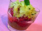 Cristalline de fraises, rhubarbe, mousse à la noix de coco et "passion" votez maintenant Dessertfacile1 heure709 Kcal Envoyer cette recette à un ami Imprimer cette page Poser une question à l'auteur Publier votre photo de cette recette Ingrédients 3 Cristalline de framboises : 400 g de fraises 200 g de rhubarbe 100 g de sucre en poudre Mousse à la noix de coco : 20 cl de lait de coco concentré 2 feuilles de gélatine 20 cl de crème chantilly 2 blancs d'oeufs 80 g de sucre en poudre 8 gouttes du mélange passion