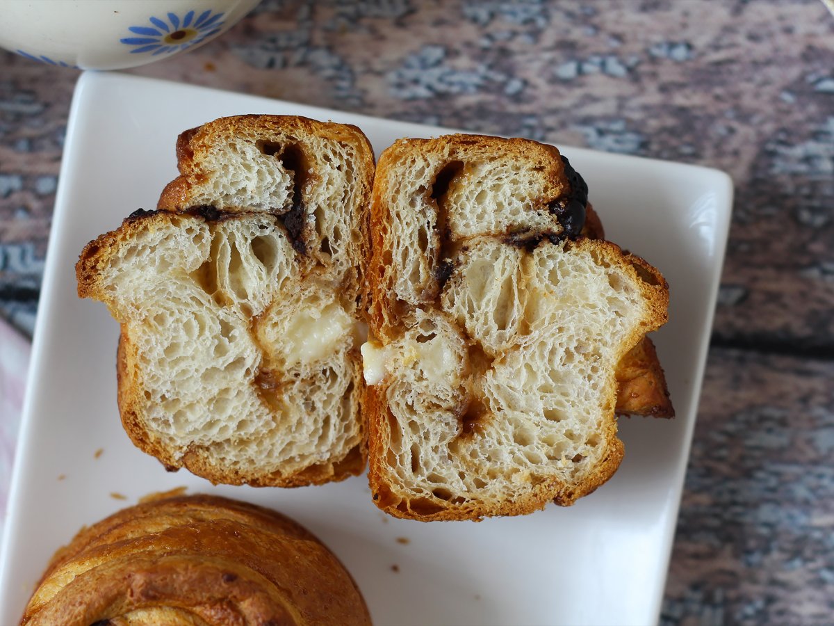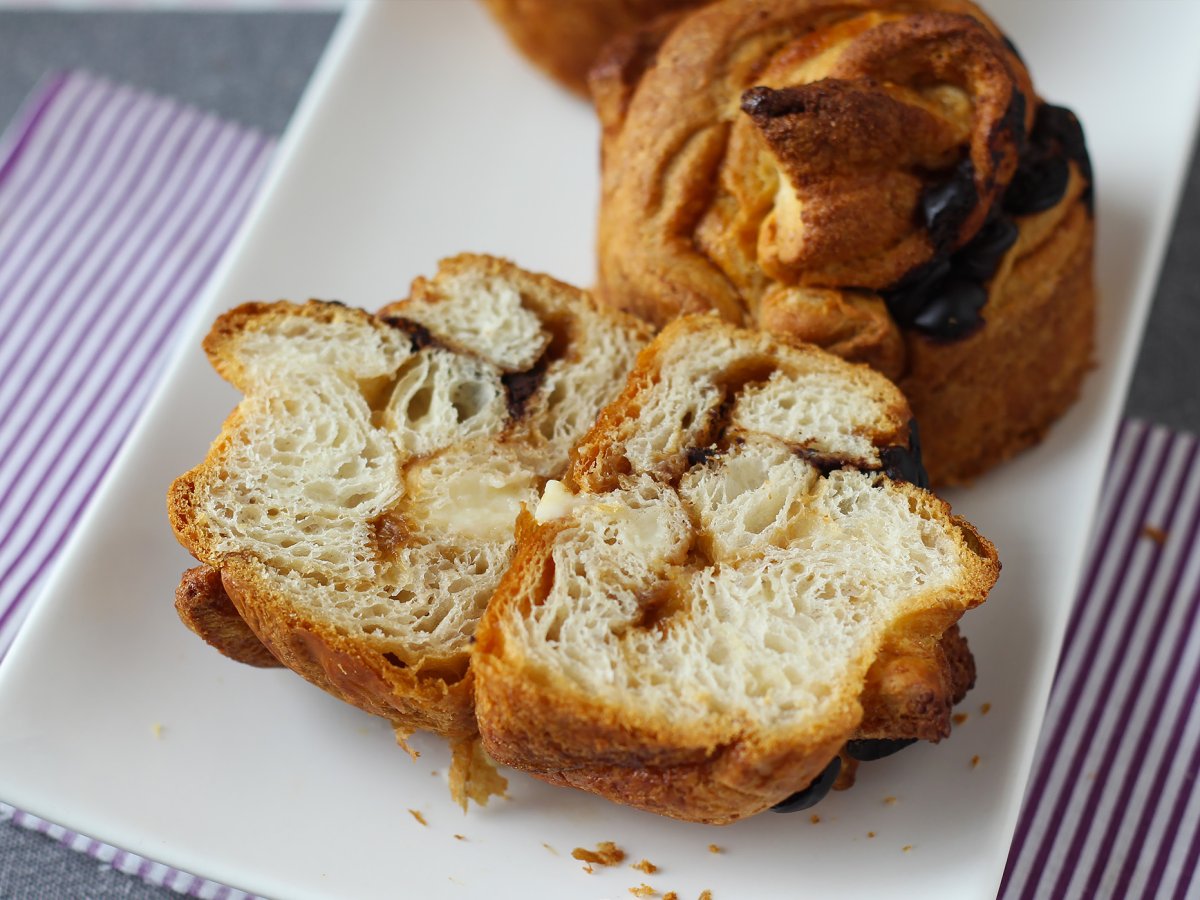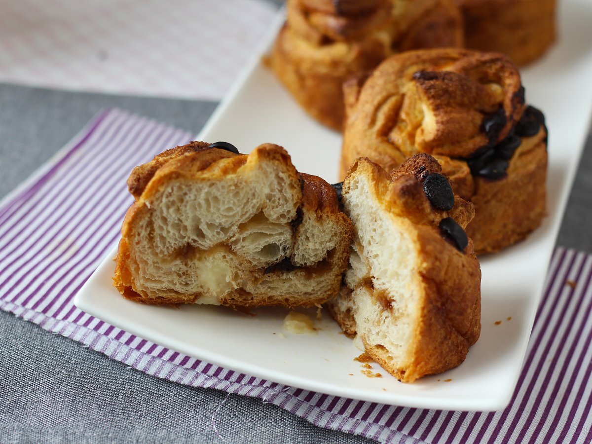 Cruffins, la combinaison d'un croissant et d'un muffin, à la crème pâtissière et au chocolat
