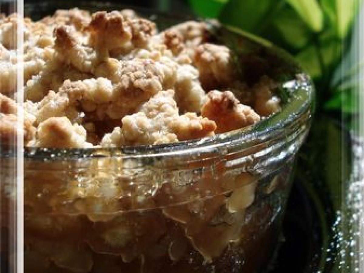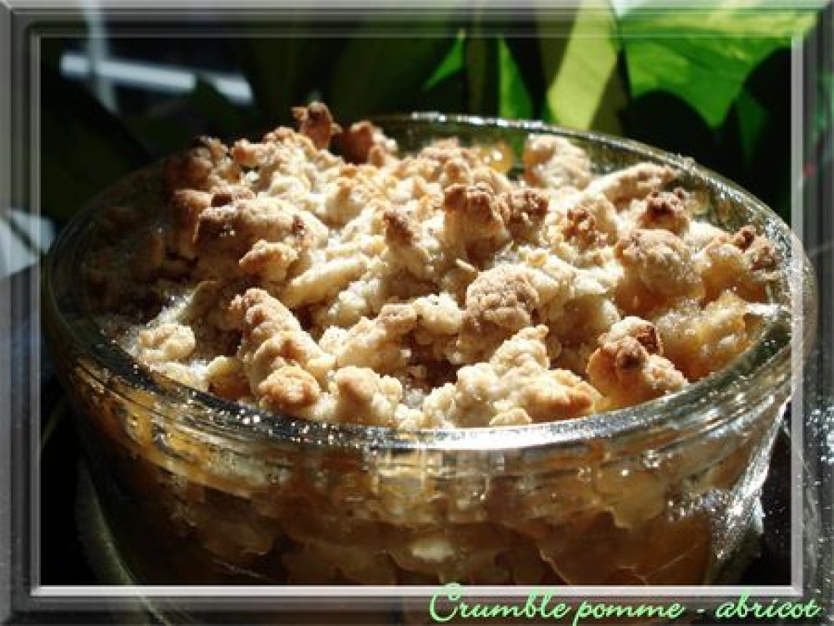 Crumble allégé pomme-abricot votez maintenant PrécédentSuivant Dessertfacile25 min Envoyer cette recette à un ami Imprimer cette page Poser une question à l'auteur Publier votre photo de cette recette Ingrédients 4 3 pommes 3 beaux abricots frais ou 6 petits oreillons en boites 1,5 cuillère à soupe de cassonade ambrée 2 pincées de cannelle 50 g de farine 25 g de cassonade ambrée 20 g de margarine 1 pot de 100 gr de compote de pommes
