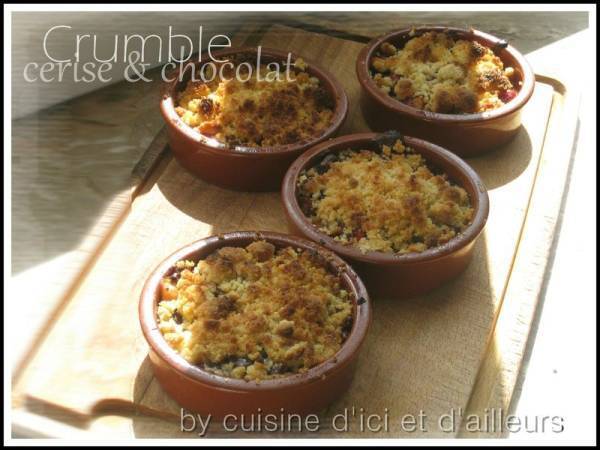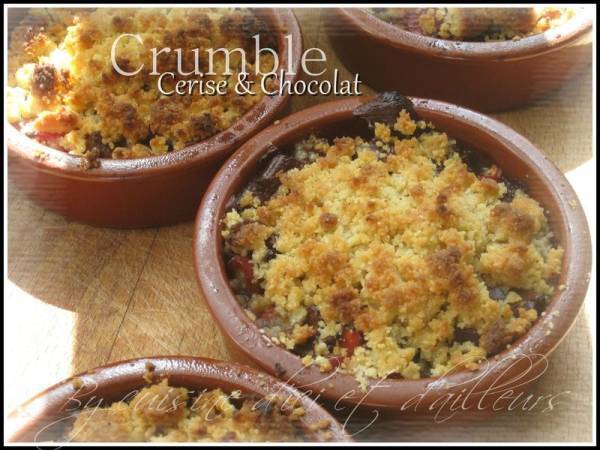 Ma copine est venue l'autre soir avec un sac rempli de cerises (coeur de pigeon), alors pour ne pas les laisser dépérir, et sur ces conseils j'ai concocté un crumble, je me suis inspirée de la recette du blog dans vos assiettes, j'ai juste retiré la noix de coco