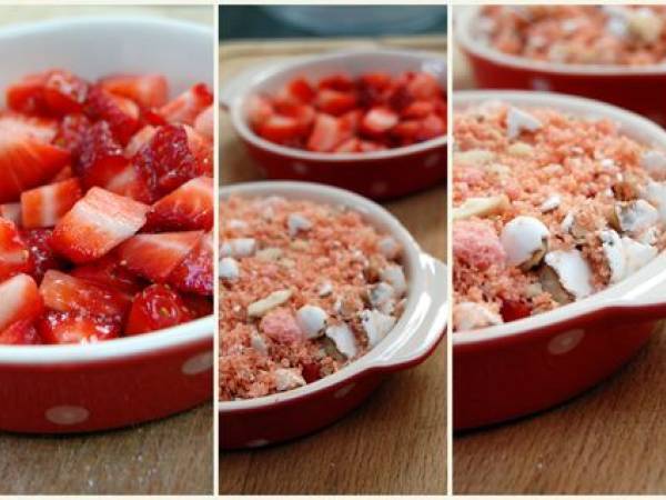 Crumble de fraises aux dragées votez maintenant PrécédentSuivant Dessertfacile18 min Envoyer cette recette à un ami Imprimer cette page Poser une question à l'auteur Publier votre photo de cette recette Ingrédients 6 250 g de fraises 200 g de dragées 12 biscuits roses de Reims 50 g de beurre fondu