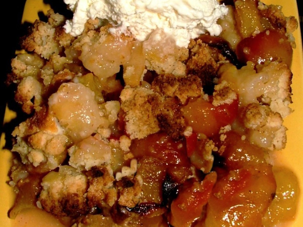 Crumble de prunes et pêches à la mousse de crème bridélice Dessertmoyen1 heure Envoyer cette recette à un ami Imprimer cette page Poser une question à l'auteur Publier votre photo de cette recette Ingrédients 2 Mousse Bridélice à la pointe de crème : 12%mg Prunes Pêches Margarine Fruit d?Or léger (45%mg) 2 sucre vanillé et ½ de sachet de sucre blanc Cannelle Eau d?orange Farine blanche Poudre amande : 2 poignées