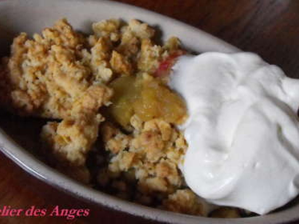 Crumble pomme-rhubarbe aux flocons d'avoine Dessertfacile45 min533 Kcal Envoyer cette recette à un ami Imprimer cette page Poser une question à l'auteur Publier votre photo de cette recette Ingrédients 4 4 pommes 500 g de rhubarbe 1 noix de beurre 20 g de sucre Pâte à crumble: 100 g de farine 75 g de flocons d'avoine 1 sachet de sucre vanillé 60 g de sucre en poudre 80 g de beurre froid 1 jaune d'oeuf 1 pincée de gingembre moulu Coût estimé: 5.98Euros€ (1.49€/part)