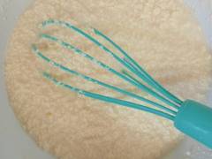 - Rajouter les oeufs, le sucre, le lait, la farine et bien mélanger. Utiliser le fouet pour obtenir une pâte homogène.