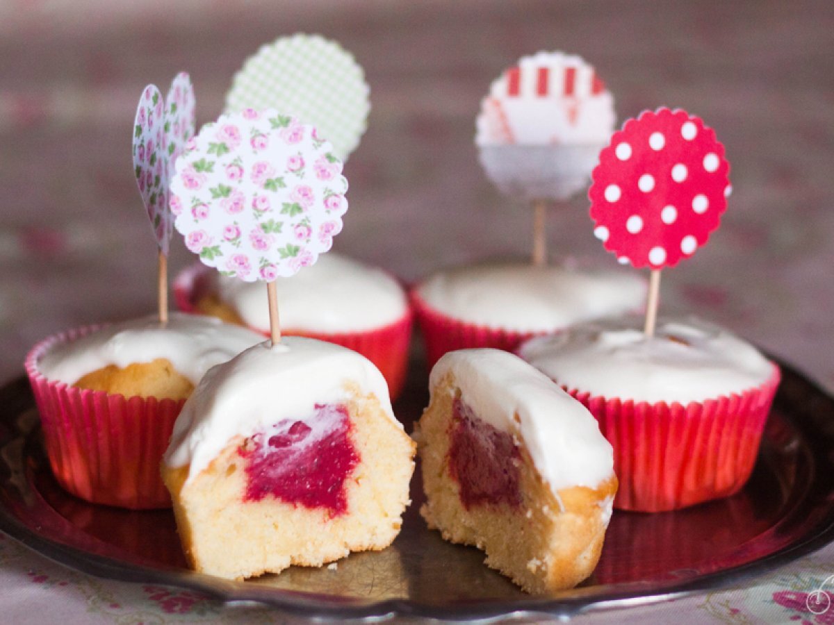 Cupcakes au yaourt, coeur de framboise