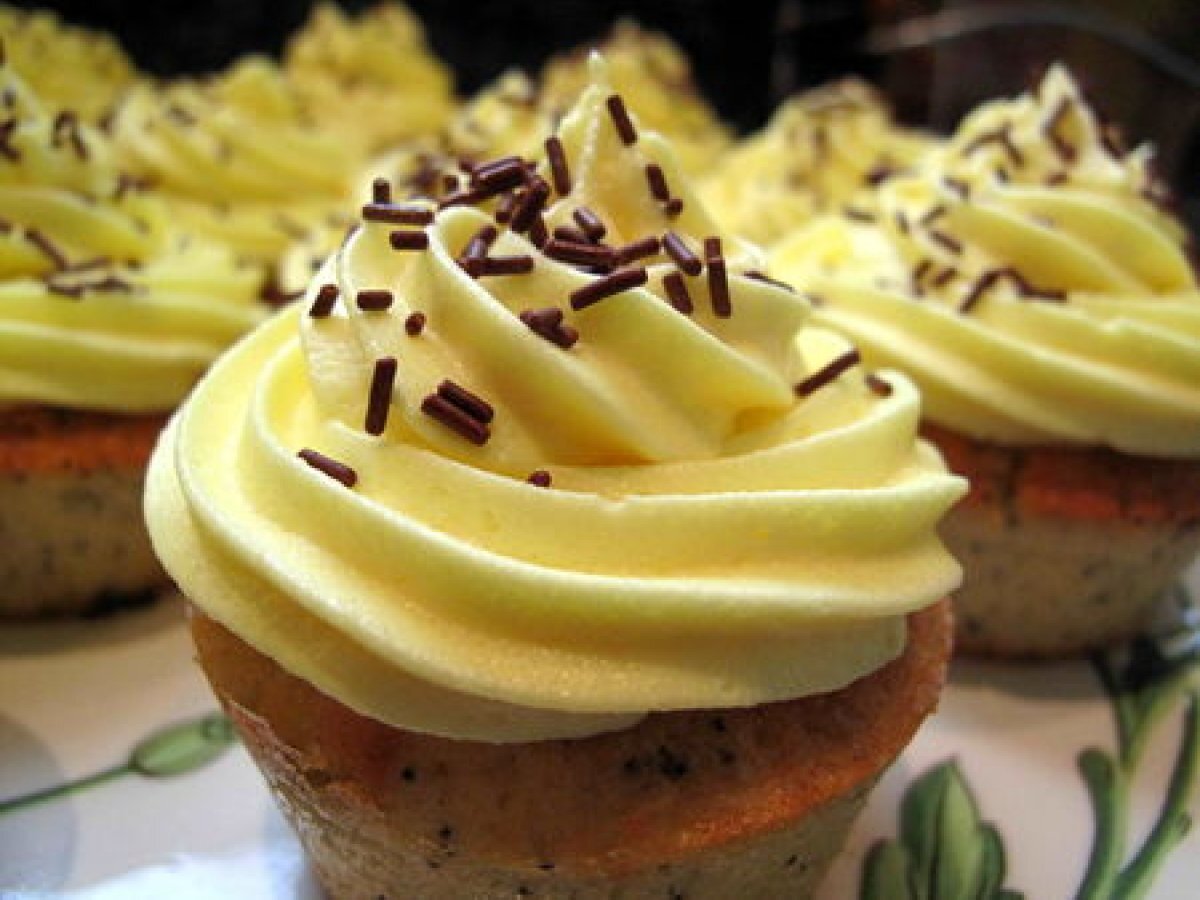 Cupcakes citron-pavot et leur super glaçage citron qui en jette ! PrécédentSuivant Dessertmoyen42 min Envoyer cette recette à un ami Imprimer cette page Poser une question à l'auteur Publier votre photo de cette recette Ingrédients 4 Cupcakes : 225 g farine avec levure incorporée 175 g sucre roux zeste de 2 citrons jaunes 1 cuillère à soupe graines de pavot 3 oeufs 100 g de yaourt nature 175 g beurre Glaçage : 225 g beurre 400 g sucre glace jus de 1 citron quelques gouttes colorant jaune fleurs cristallisées vermicelles de couleur pour décorer