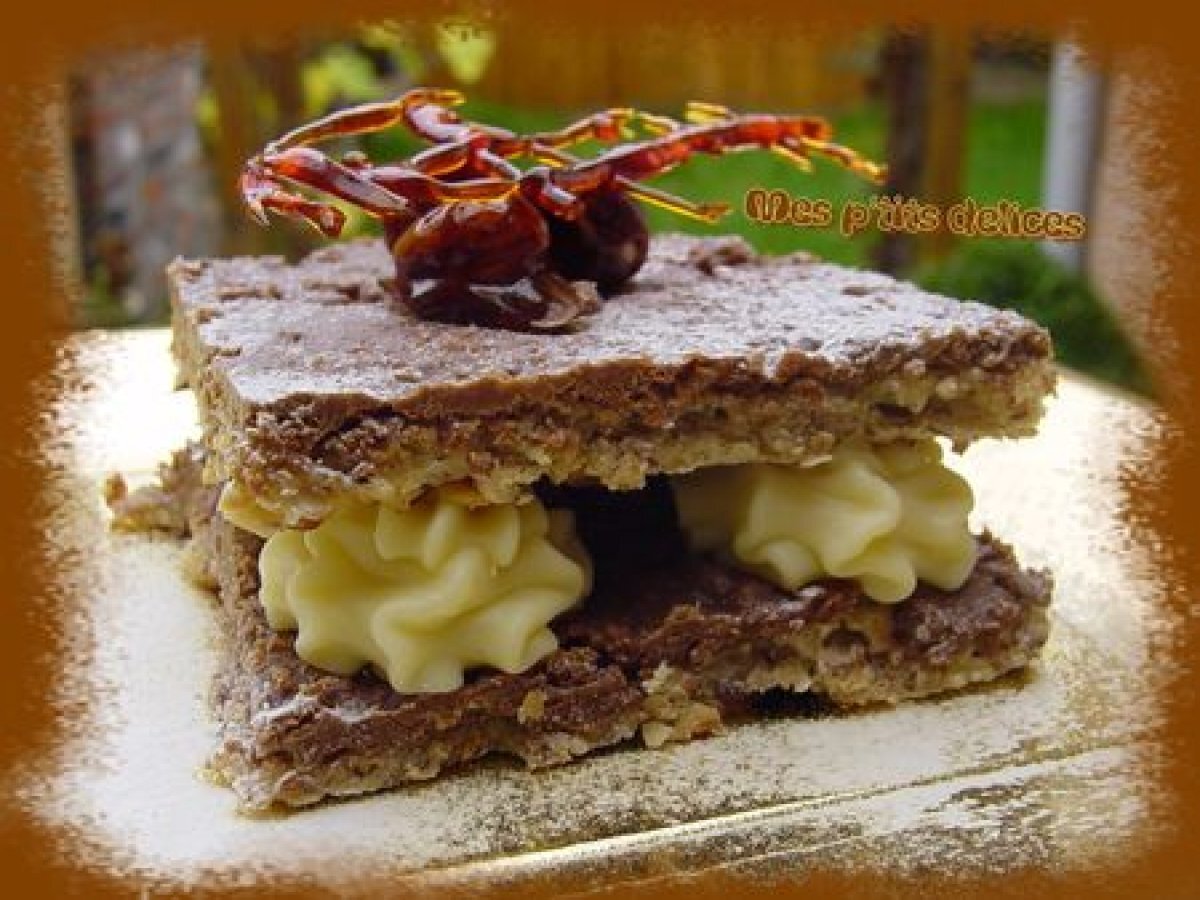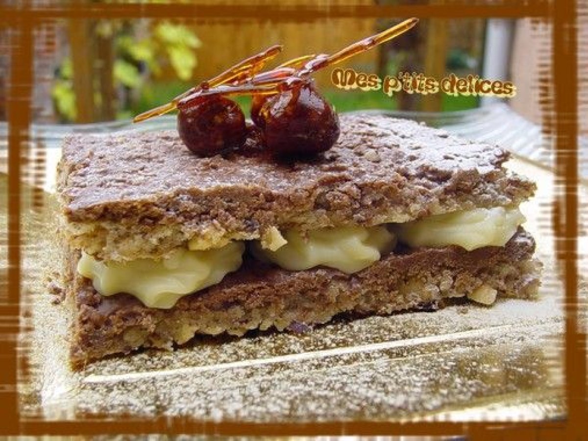 Dacquoise aux noisettes, praliné feuilleté et ganache au chocolat blanc