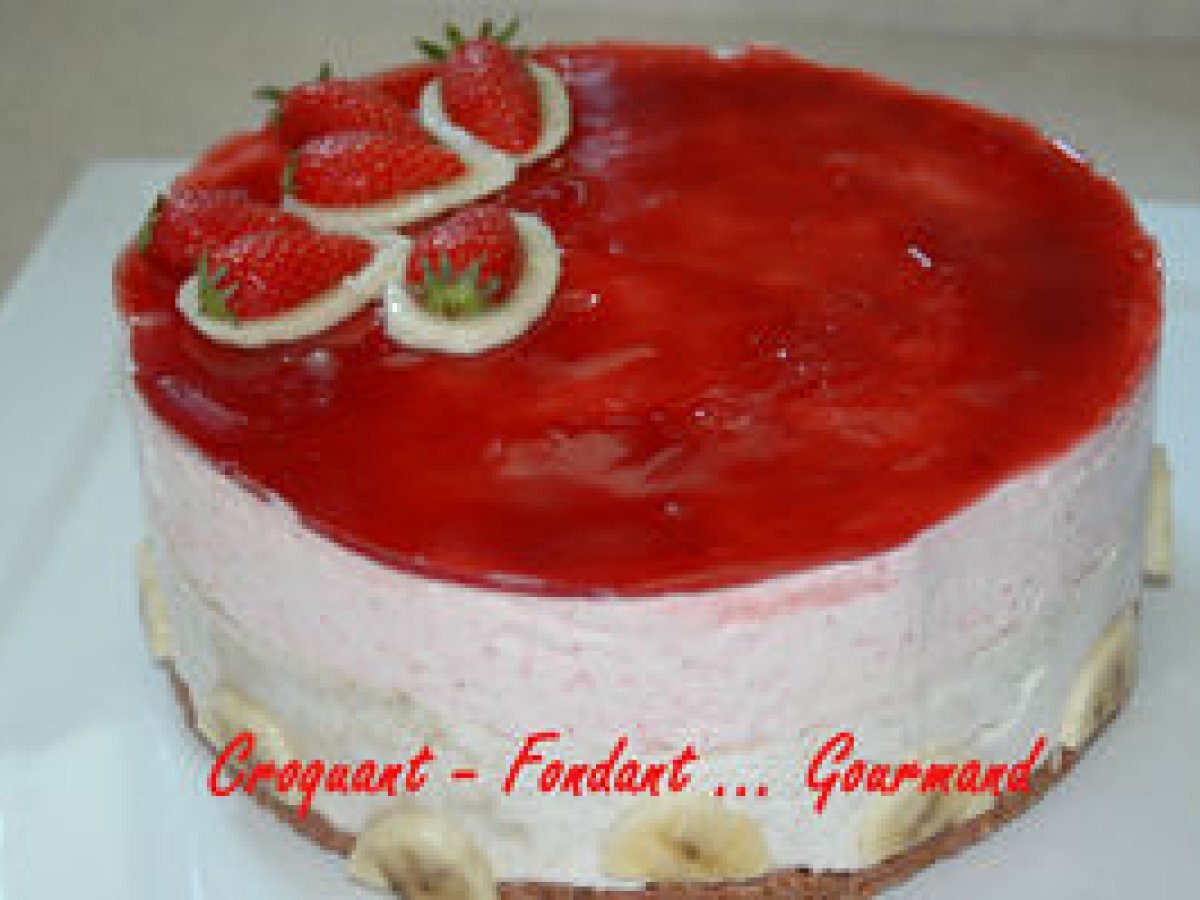 Délice glacé fraises-bananes Dessertfacile55 min438 Kcal Envoyer cette recette à un ami Imprimer cette page Poser une question à l'auteur Publier votre photo de cette recette Ingrédients 10 Pour le Fond : 150 g de biscuits roses de Reims 50 g de beurre ramolli Pour les mousses : 250 g de bananes épluchées 250 g de fraises 220 g de sucre 2 blancs d'oeufs 500 g de crème fraîche liquide 12 cuillères à soupe de jus de citron 50 g de rhum 5 (2 + 3) feuilles de gélatine Pour la garniture : 100 g de sirop de sucre de canne 2 feuilles de gélatine 1 banane quelques fraises Coût estimé: 10.64Euros€ (1.06€/part)