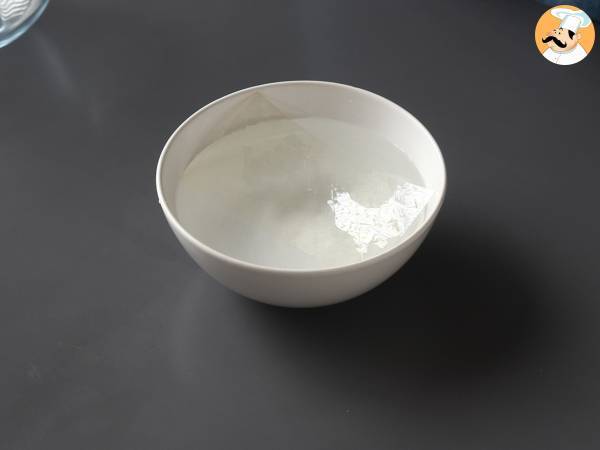 Réhydrater les feuilles de gélatine en les plaçant dans un bol d'eau froide.