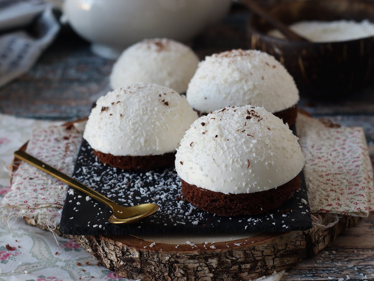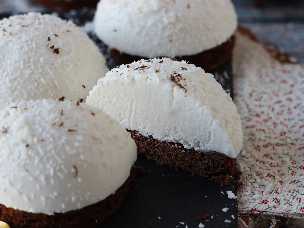 Ce dessert au chocolat et noix de coco en forme de dôme est une véritable gourmandise à la fois fondante et croquante! Imaginez une crème coco onctueuse, légère comme un nuage, qui se mêle à un biscuit chocolaté. La texture est parfaite : un extérieur légèrement craquant avec le biscuit et un cœur fondant et crémeux… tout simplement irrésistible ;-) Et avec sa forme en dôme, ce dessert est aussi beau que délicieux, idéal pour impressionner vos invités. Le mélange chocolat-noix de coco est un duo magique qui fonctionne toujours – à tester absolument!